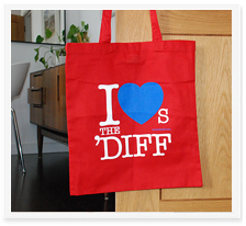 Made of 100% cotton, reinforced stitching on long, over-the-shoulder handles. Capacity 10 litres. Printed in - and with love for - the 'Diff. (Wasn't that technical really, was it?)
